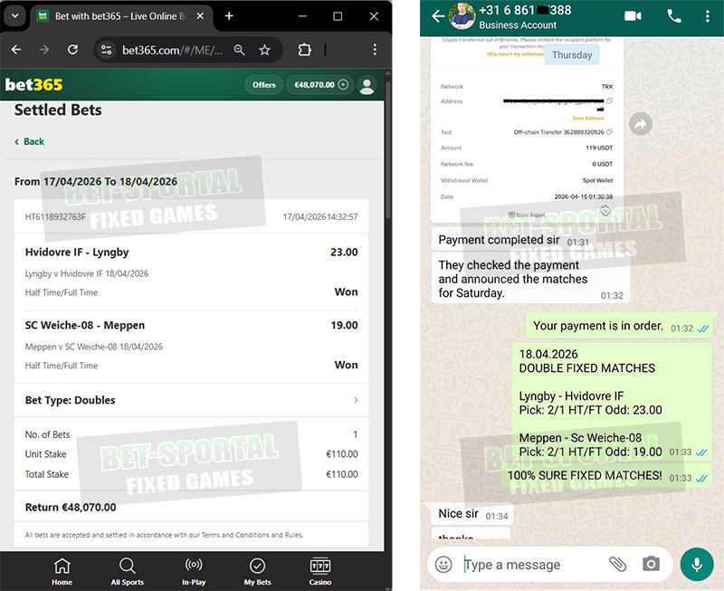 After the payment, you will receive the fixed matches on Mail or WhatsApp. :